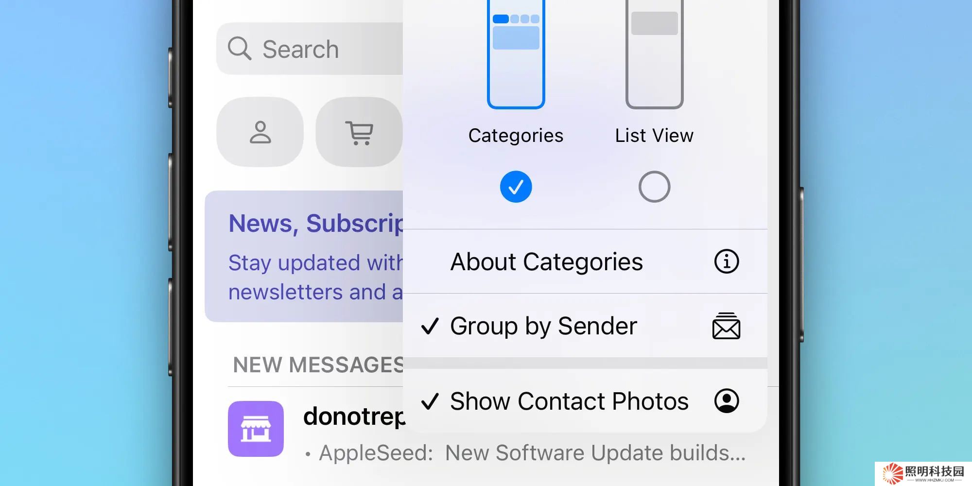 此前用戶僅能通過右上角三點菜單關閉分類視圖,如今該菜單新增了關閉聯系人頭像和 "按發件人分組" 摘要視圖的選項。