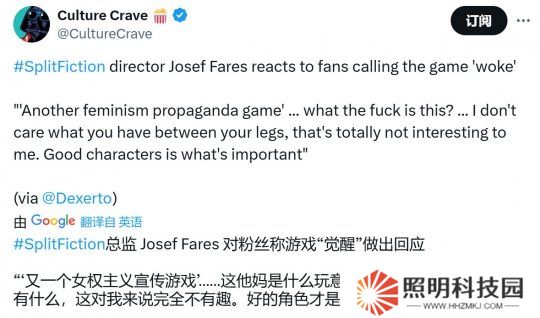 對于《雙影奇境》被批評是woke游戲,創意總監Josef Fares回應說:“又一個女權主義宣傳游戲’……這他媽是什么玩意?……我不在乎你兩腿之間有什么,那對我來說完全不重要。好的角色才是關鍵。”