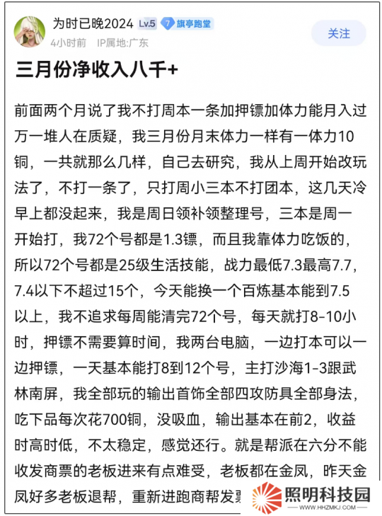 原來,一位《逆水寒》的五年老玩家,這些年一直做游戲攻略,眼看黃金服搬磚黨眾多,他把自己的攻略整理成了文字檔,新手只要按照他的方法起號、打副本,就能很快上手。