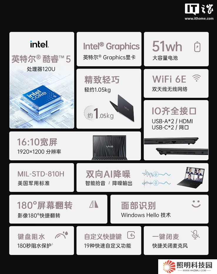 該機配備一塊13.3英寸1920x1200分辨率60Hz 面板,配備92萬像素前置攝像頭(提供物理攝像頭隱私開關),官方強調該機全新升級“VAIO 視頻會議控制”軟件,配備 AI 降噪麥克風,4 種模式可選,一鍵切換。