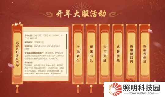 3月13日、3月17日、3月20日、3月25 日、4月9日22:00,新服分階段開(kāi)放重要系統(tǒng)功能。階段開(kāi)放當(dāng)天,強(qiáng)力 BOSS 現(xiàn)身武林。幫會(huì)合力擊退 BOSS,根據(jù)傷害排名獲得幫會(huì)BOSS獎(jiǎng)勵(lì),世界拍賣(mài)還會(huì)刷新珍貴寶物,快和幫會(huì)兄弟并肩作戰(zhàn)!