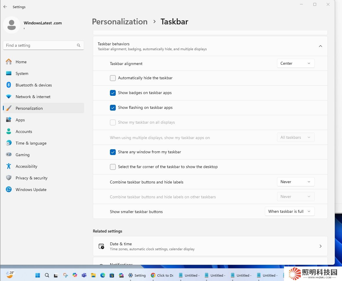 正如前文所述,用戶可以在“任務(wù)欄行為”部分的“任務(wù)欄設(shè)置”中更改任務(wù)欄處理應(yīng)用程序圖標(biāo)的方式,然后從“顯示較小的任務(wù)欄按鈕”中選擇上述任一選項(xiàng)。