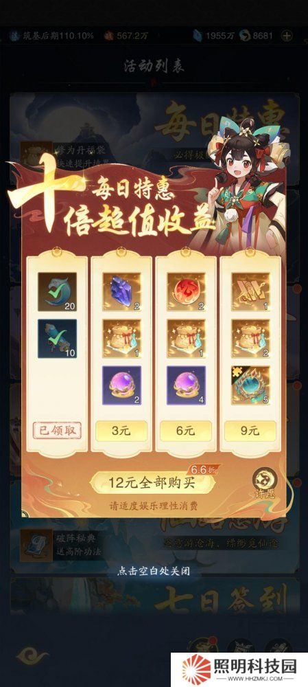 小氪玩家可購買6元/68元丹藥禮包(如“修為丹+身法丹+暴擊丹”),加速突破瓶頸,每日特惠拉滿12元,長期積累代金券與造化(買“妖丹”和“建筑材料”)。另外相對于玩家直充,購買禮包的性價比更好,可以選擇每日禮包和每周禮包,相比直接充值,還可以獲得額外道具。