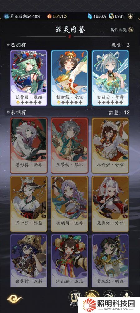 接下來是器靈,《踏風行》器靈系統是該游戲的一大特色,器靈不僅是玩家戰斗中的得力助手,還能提升洞府資源產出效率。10多個立繪精美的器靈,修煉成型的上古神器,就像伙伴一樣,自帶主動技能+被動效果,屬性和定位各不相同,可以實現不同的戰斗流派。