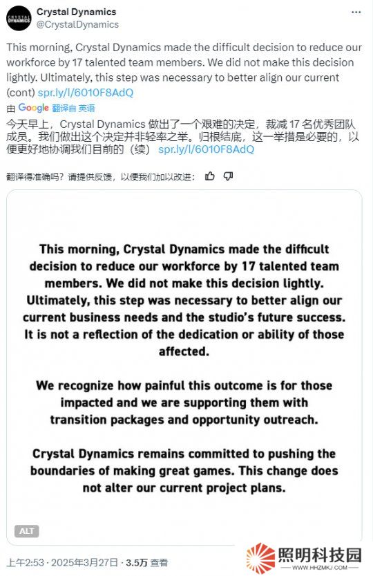 “今天早上,Crystal Dynamics 做出了一個(gè)艱難的決定,裁減 17名優(yōu)秀團(tuán)隊(duì)成員。我們做出這個(gè)決定并非輕率之舉。歸根結(jié)底,這一舉措是必要的,以便更好地協(xié)調(diào)我們目前的業(yè)務(wù)需求和未來的工作發(fā)展?!?/p>