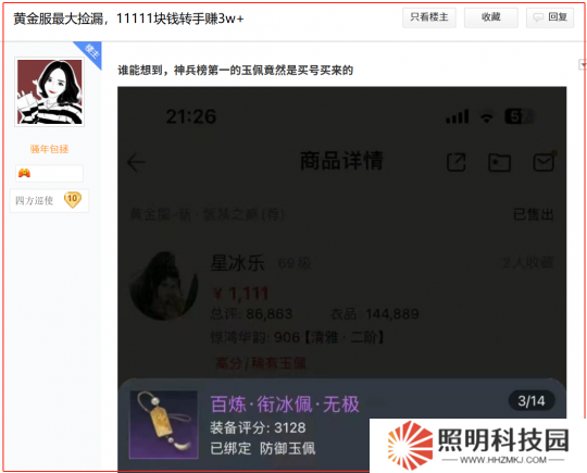 如果關注黃金服的玩家,經常可以在貼吧、視頻網站看到玩家分享的撿錢經歷,例如做個青崖書拿到箱子,居然開出了價值數萬元的稀有詞條;打團本爆神兵碎片一下子分了幾千塊人民幣;甚至是1111元買個號,因為號上自帶全服第一的玉佩,轉手賺了5萬的。