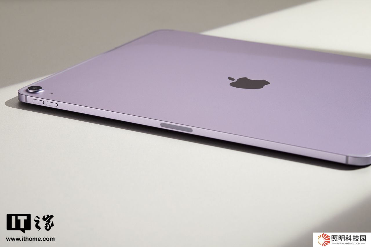 iPad Air 機身采用 100% 再生鋁金屬,紫色版的色澤是比較淡雅的,在光線直射下甚至會有些偏銀灰,有一種神秘夢幻的感覺。