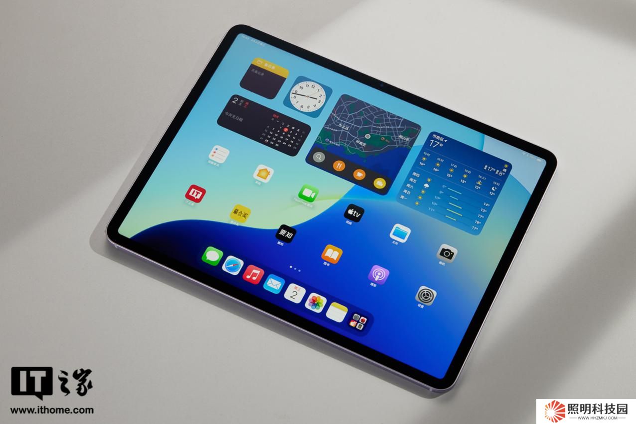 本站拿到的是 13 英寸 1TB 無線局域網 + 蜂窩網絡的版本,配色為紫色。不得不說 13 英寸的塊頭確實很大,初見握在手上好像拿著的是一臺很薄的筆記本。