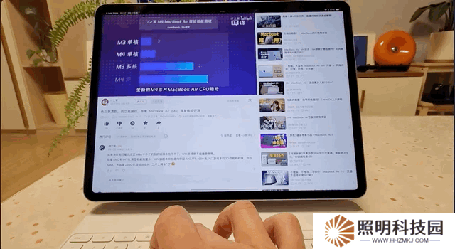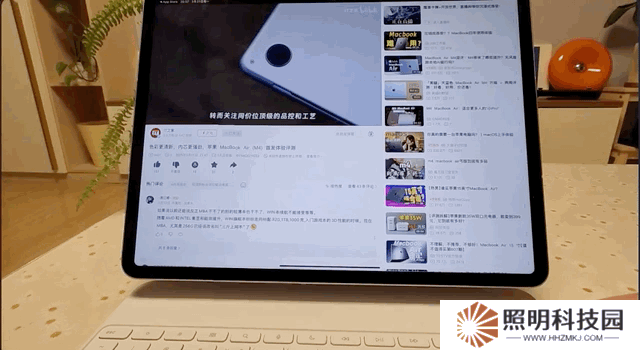 還有一點就是,當 iPad Air 搭配妙控鍵盤使用時,你可能會覺得 iPad Air 不是很穩,特別是需要用手觸控屏幕時,稍微用點力,iPad 就會聯動轉軸出現晃顫,這可能會影響體驗感。