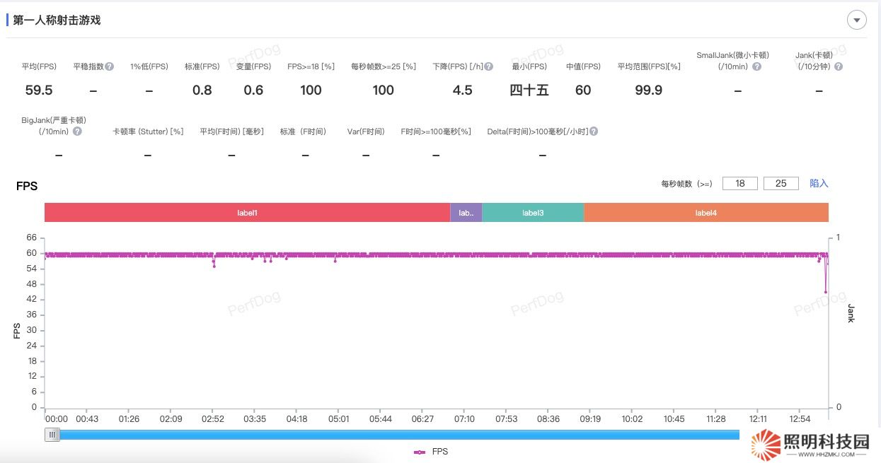 測試過程中,小編主要是在游戲中的楓丹廷進行跑圖,20 分鐘后測得平均幀率為 59.4 fps,可以幀率幾乎沒有波動,非常平穩。