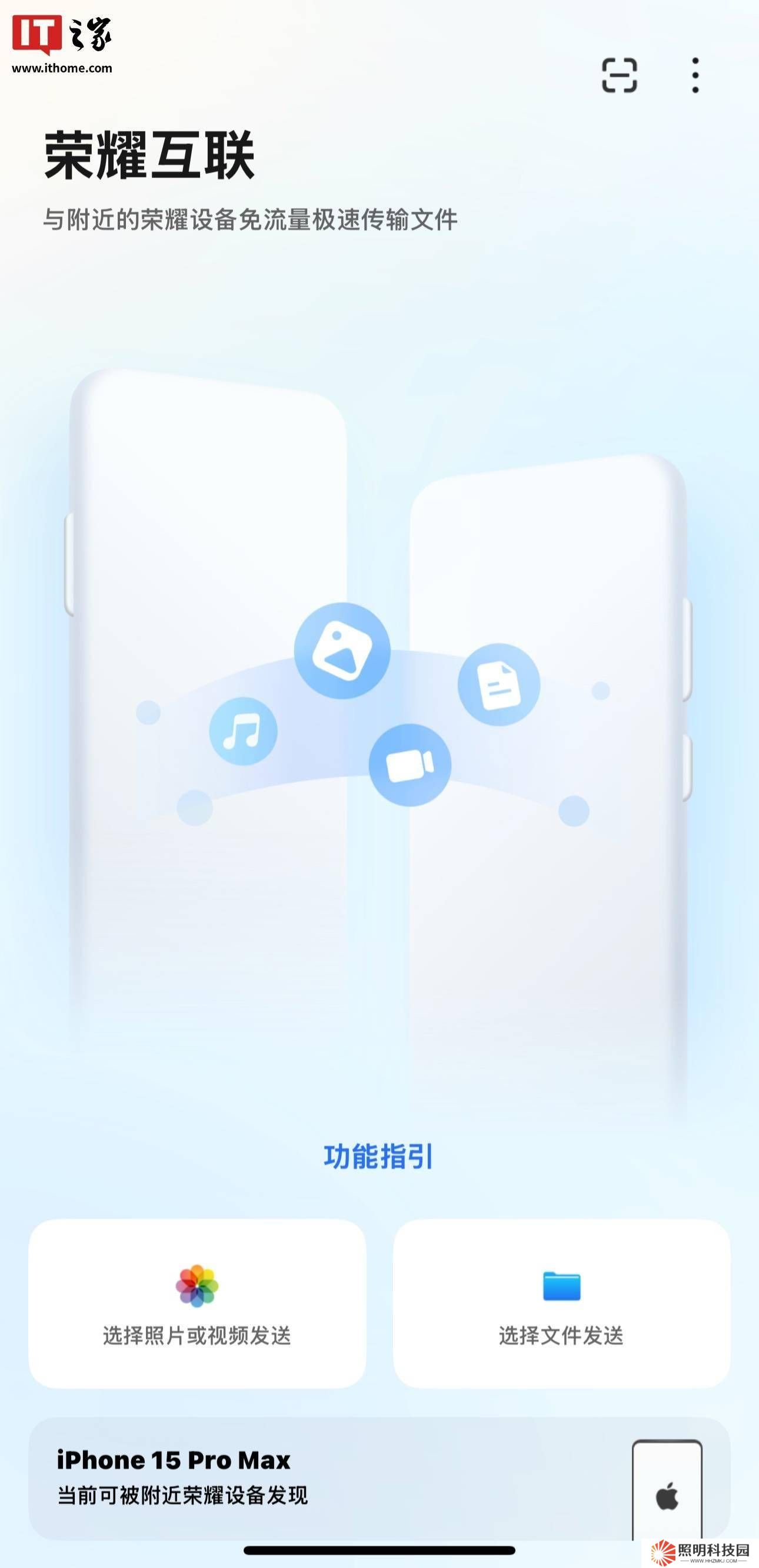 據榮耀官方介紹,“榮耀互聯”應用實現了榮耀與蘋果設備之間的“零流量”文件傳輸。用戶只需在iPhone或iPad上安裝并打開該應用,同時在榮耀設備上啟用“榮耀分享”功能,即可輕松實現文件互傳。iPhone和iPad用戶還可以通過iOS系統的原生文件“共享”面板,直接將文件發送至榮耀設備,進一步提升了操作的便捷性。