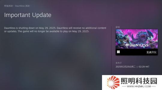 開發商 Phoenix Labs 日前在 Steam 和社交媒體上宣布,免費類怪獵合作動作游戲《無畏(Dauntless)》將于 2025 年 5 月末關服。