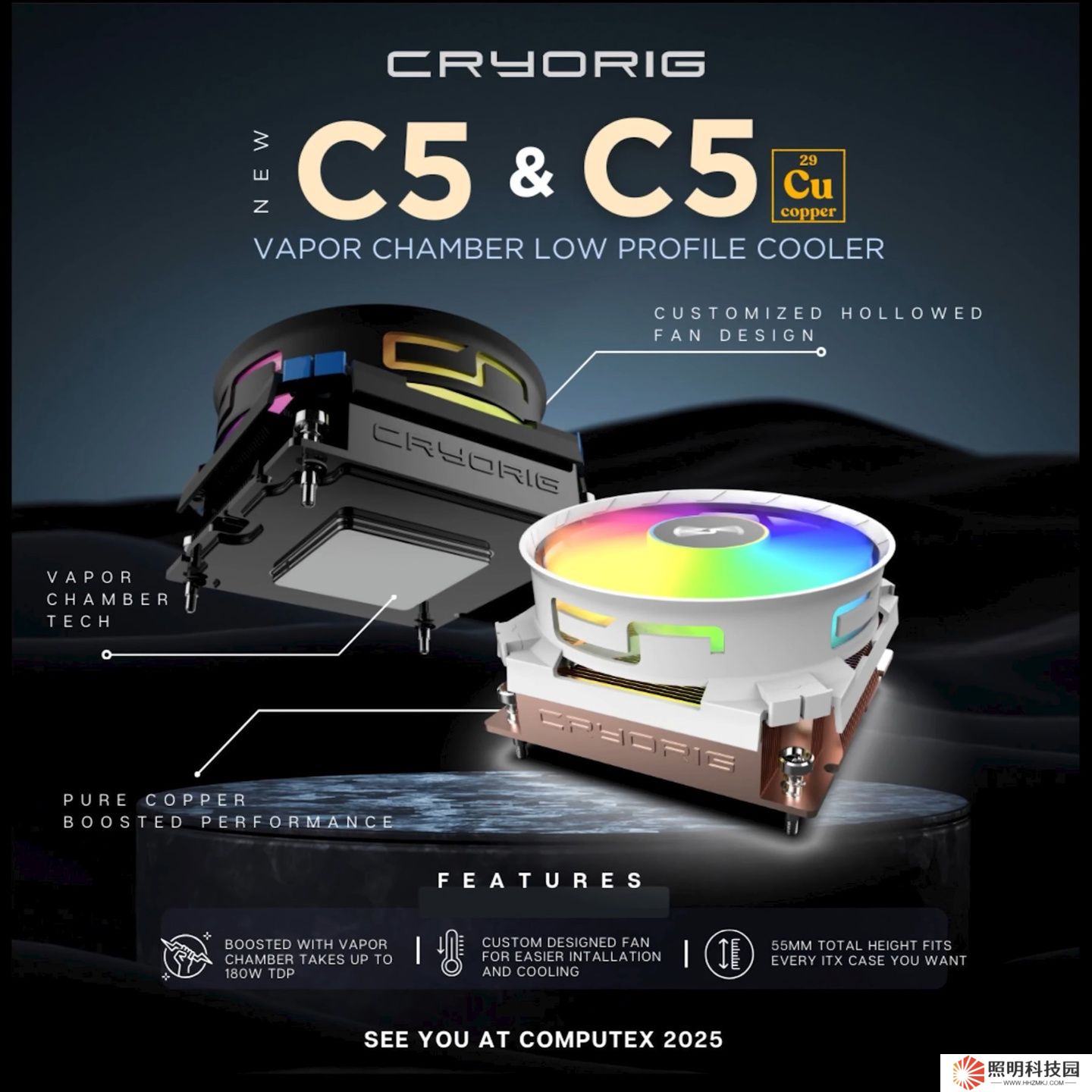 本站 4 月 2 日消息,快睿在向油管頻道 STS 等媒體提供的 COMPUTEX 2025 臺(tái)北國(guó)際電腦展預(yù)熱材料顯示,其均熱板下壓式風(fēng)冷產(chǎn)品 C5 將在本次硬件盛會(huì)上亮相。快睿也會(huì)為 C5 推出該企業(yè)標(biāo)志性的純銅版本。