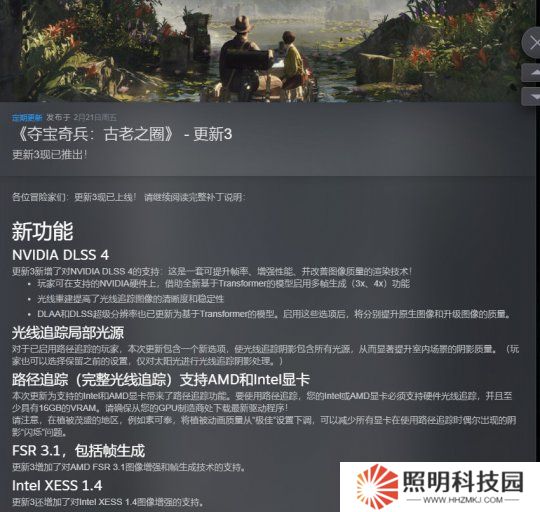 《奪寶奇兵:古老之圈》最近一次更新是在今年2月21日,名為“更新3”的補丁為游戲加入了DLSS 4、FSR 3.1(含幀生成)和英特爾XESS 1.4技術。DLAA和DLSS超級分辨率已更新為基于Transformer模型,RTX 50系玩家可基于Transformer的模型啟用多幀生成(3x、4x)功能。