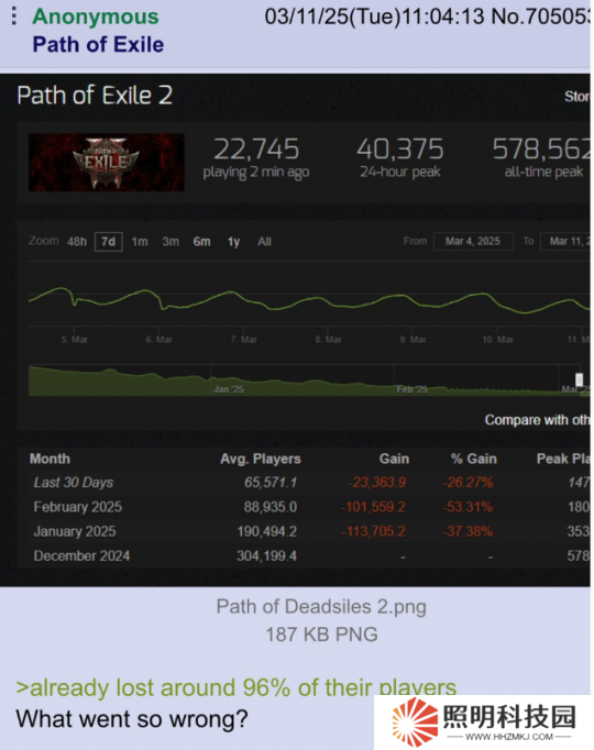 來到本月,《流放之路2》的在線玩家玩家人數僅剩4萬左右,不及巔峰時期的十分之一。超過90%的玩家,離開了這款游戲。