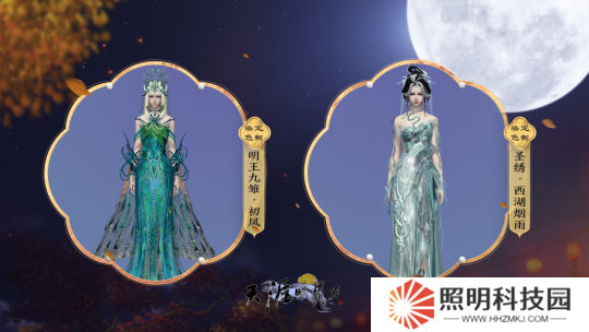西湖煙雨朦朧中,小舟蕩漾水天通。以白蛇、青蛇為設計靈感的主題套裝【圣繡·西湖煙雨】也于神池問影系統登場,腰間盤扇銜珠,恍如西湖水漫過綢面~