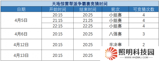 (4)2025年4月5日“天地驚雷幫派爭霸賽”比賽將正式開始,比賽時間安排如下: