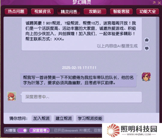 DeepSeek以超強的深度學習能力和超高精度的中文推理能力,賦予了夢幻精靈深度語義理解與動態學習的能力。接入DeepSeek后的夢幻精靈,可以構建起包含門派技能、游戲經濟系統、游戲社交生態等內容的立體認知網絡,玩家可以通過自然對話來咨詢在游戲過程中遇到的一系列復雜問題。