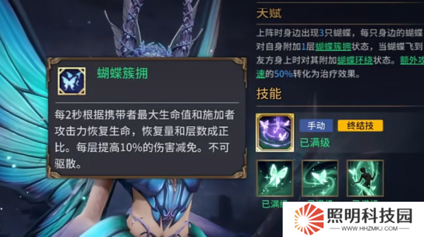 塔露拉的天賦一上場,就能看到她身邊翩翩飛舞的三只蝴蝶。每只蝴蝶都會賦予塔露拉自己和隊友一個叫做“蝴蝶簇擁”的狀態。別看這個名字有點小清新,它的實際作用可不簡單——每當蝴蝶飛到友方身上時,便會為隊友帶來“蝴蝶環繞”的效果。這一狀態可是非常強大的,它能驅散隊友身上的有害狀態,讓你的隊友免于被負面效果折磨。