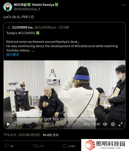 神谷英樹目前正在新的游戲工作室 CLOVERS,開發 TGA 上宣布的《大神》續作。最近工作室的推特發布了一段新視頻,展示神谷一邊觀看《龍鱗化身》的老視頻,一邊“回憶開發過程”。工作室在社交媒體上透露稱,神谷“仍為它感到自豪”,并且仍有意愿“有一天能再次制作它”。