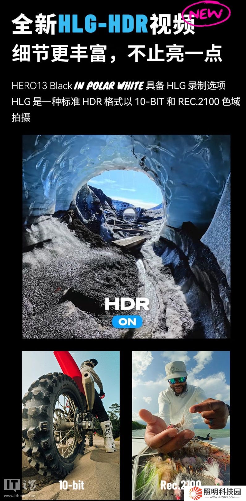 根據 GoPro 官方所述,該“極域白”配色運動相機“數量有限,但樂趣無邊”,可搭配 HB 系列磁吸鏡頭 / 濾鏡使用,在裝上 HB 系列鏡頭 / 濾鏡后相機可自動檢測,自動優化相差 / 畸變等。