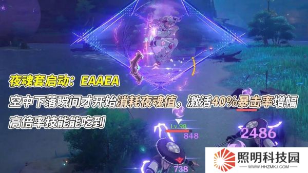 ②長夜之誓套:上限更高,提供100%下落攻擊增幅(EA起手已疊4層后續維持5層),此時雙暴就基本依賴于圣遺物主副詞條與武器了。可選擇‘攻擊沙、雷傷/攻擊杯、暴擊頭’。