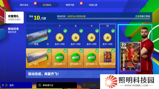 實況足球雙端聯動通行證任務重磅開啟!使用手游賬號登陸端游并完成通行證任務,獲得經驗值后可領取通行證等級獎勵。免費版通行證雙端滿級后可獲得【1000金幣】;花費點卡解鎖豪華版通行證,雙端滿級后可額外獲得【技巧訓練】*10和【增能夢幻精選薩拉赫】。