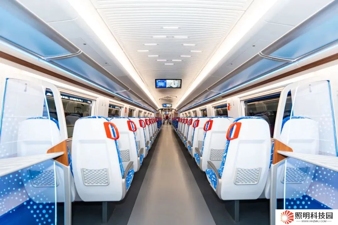 列車搭載智能服務系統,采用全數字以太網通訊和 5G 網絡技術,實現車內 Wi-Fi 覆蓋、電視直播、旅客信息智能交互等全場景智能化運用。值得一提的是,列車首次應用智慧車窗,可根據不同場景實現信息個性化顯示。本站附官方介紹圖如下: