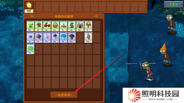3、你可以在戰(zhàn)斗開始之前,選擇自己想要出戰(zhàn)的植物,然后點擊下方的一起搖滾吧就能夠開始進行游玩。