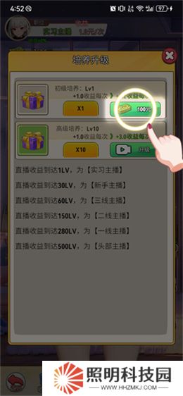 8、消耗金錢能夠提升直播的收益,同時(shí)高級培養(yǎng)也同樣需要看廣告來進(jìn)行獲取。