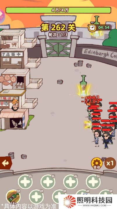 大師兄的主動技能可以在場地中丟出10個酒瓶,對選中的敵人造成傷害;被動技能可以增加大師兄的輸出頻率,并且擊殺敵人后會使兩個技能的冷卻時間減少,增加技能釋放的頻率;各位大俠可以在前期使用大師兄來進行過度;
