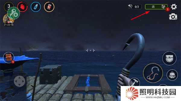 4、海上遇到物資,使用【鉤子】將其從水中拉出來。