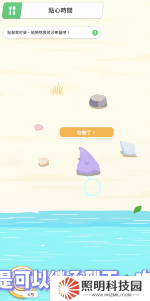 3、當你完成了睡眠的檢測之后,就能夠在自己的島嶼上遇到寶可夢,這個時候點擊寶可夢并在下方點擊確認來喂食布蕾。