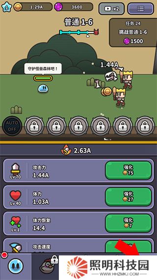 1、首先在本站下載并打開史萊姆大冒險游戲,進入游戲首界面后,可以看到下方的史萊姆屬性等級升級條。