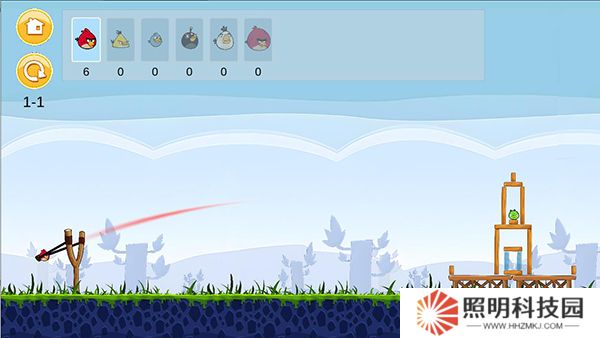5、通過彈弓將自己的小鳥發射,并由此來擊敗關卡里面的搗蛋豬。