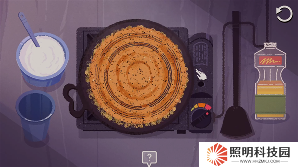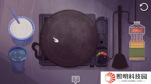 3、然后玩家們點擊拖動右側的油瓶在煎餅周圍到上一點。