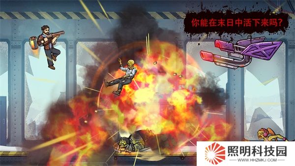 1、關(guān)卡場景中會出現(xiàn)大量危險的僵尸,玩家們需要將其全部消滅前往終點即可完成通關(guān)。