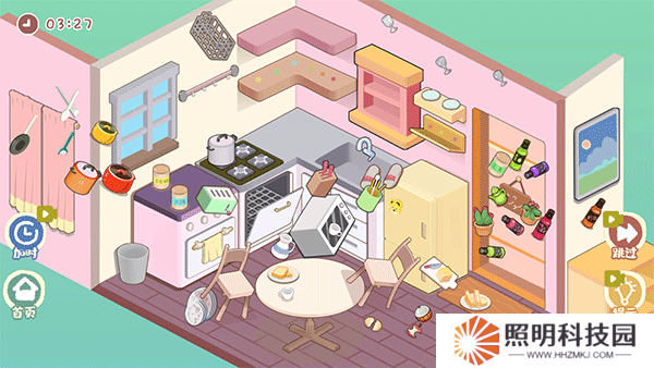 1、首先將*扔到左邊的*桶,微波爐、鍋等放在左邊的臺子上,臟盤子放到洗碗機;