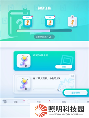 4.此外你完成游戲內部的任務也將能夠獲取到一定的獎勵,幫助你更加快速的抽取到想要的寶可夢卡牌。