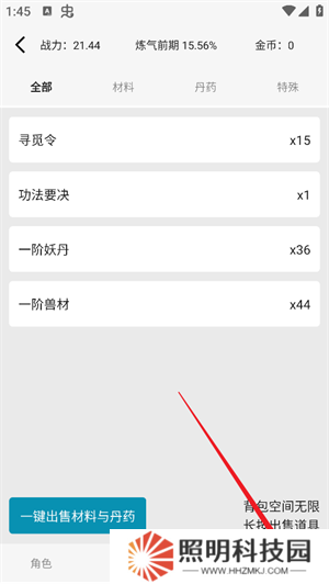 7、點擊右下角的背包按鈕,你還將能夠使用背包里面的各種物品,用于強化自身。