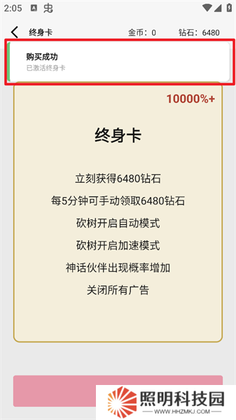 2、然后你就能夠開始進行自己的砍樹尋道之旅,點擊左下角的終身卡。