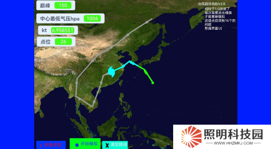 4、臺風會沿著點位來進行行動,并由此呈現(xiàn)出一個模擬的路線圖。