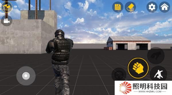 4、進(jìn)入到場景內(nèi)后玩家們滑動(dòng)輪盤控制角色移動(dòng),點(diǎn)擊右側(cè)進(jìn)行攻擊跳躍蹲下等操作。