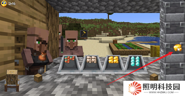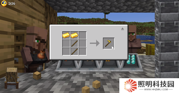 7、通過將反應(yīng)出來的金塊以及木棍按照指定的方式進(jìn)行排列,你將能夠合成出一個(gè)黃金鐮刀。
