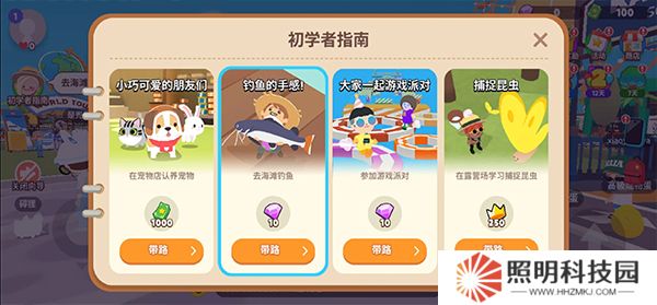 2、然后再初學(xué)者指南的界面里面選擇第二項(xiàng)釣魚的操作。