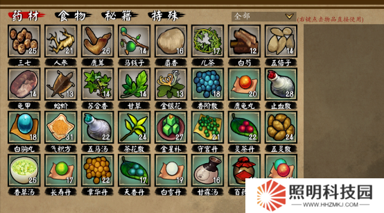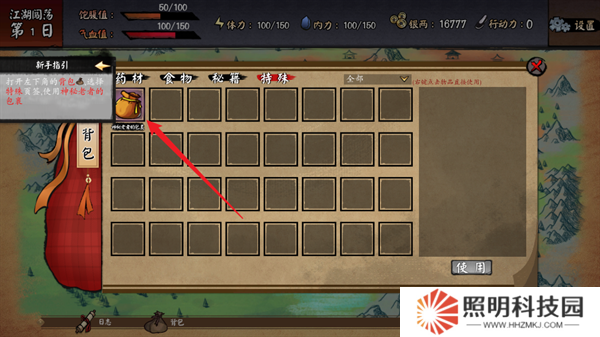 4、在特殊欄當(dāng)中使用包裹,獲得包子、療傷藥以及明月劍法。