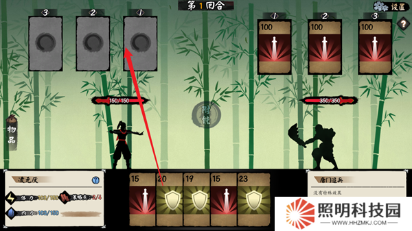 8、接下來(lái)會(huì)觸發(fā)一場(chǎng)戰(zhàn)斗,主要的作戰(zhàn)方式就是將自己的卡牌拖動(dòng)到上方,并以此來(lái)進(jìn)行作戰(zhàn)。