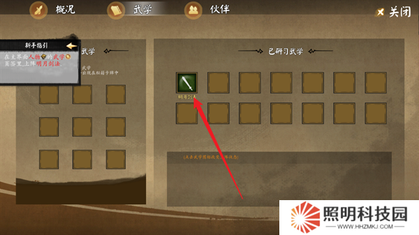 6、在武學(xué)的界面里面裝備明月劍法。
