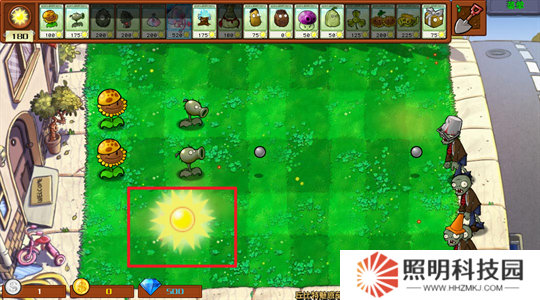 4、玩家們需要收集場景內掉落的陽光,以此來購買種植植物。