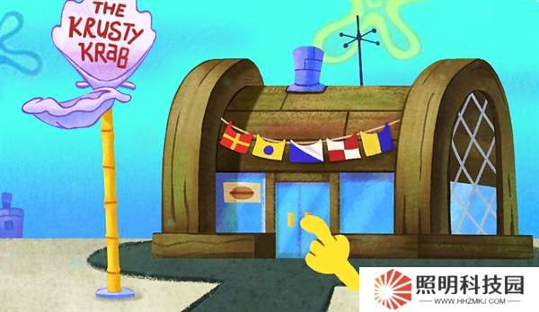 1、玩家們進(jìn)入游戲之后,點(diǎn)擊蟹堡王的店門就能夠開始進(jìn)行經(jīng)營(yíng)。